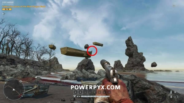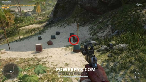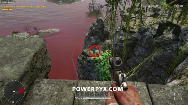 在海滩上方的岩石上,位于地图边缘。