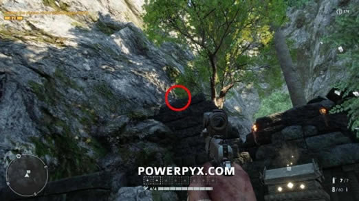 宝箱左侧的岩壁上。