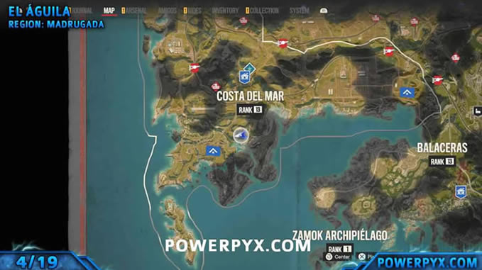 公鸡是一种收藏品,可用于 Madrugada 地区的主要营地蒙特罗农场的斗鸡场。它们中的每一个都可以由您在斗鸡中玩,您必须攻击和躲避其他公鸡。在斗鸡场的公鸡选择中,您可以滚动查看它们的名字以获取找到它们的位置的提示。默认情况下,它们不会在世界地图上标记,但如果您在线并连接到育碧帐户,您应该在离开自由岛后获得 300 孤岛惊魂点数,您可以在游戏在线的实用程序部分使用这些点数商店为他们购买地图。