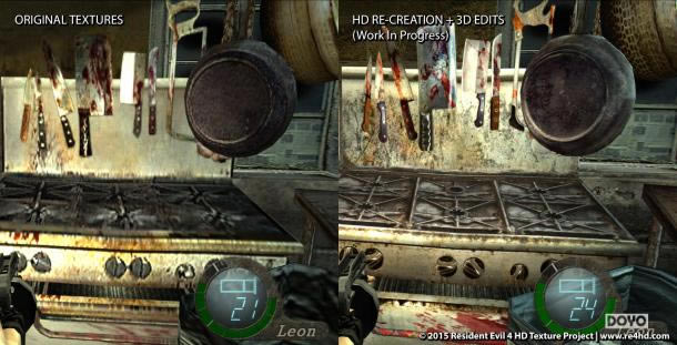 这批截图和往常一样本回依旧是全力提升原版画面细节纹理、提升建筑物3D立体效果,不过本回更多修缮区域集中在商品包装上,可以肯定的是HD画面让《生化危机4》变得更具恐怖氛围,当然,漂亮的地方更加漂亮,恶心的地方则是更加恶心!