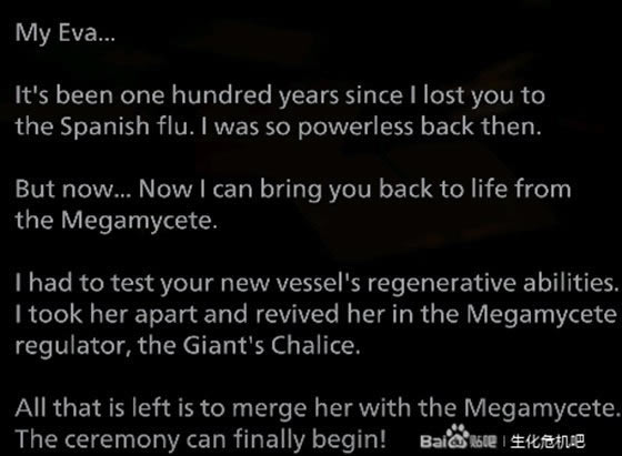但他们创造出的不过只是另一个具有缺陷的失败品“伊芙琳”(详见生化7)老化速度过快 不受控性太强