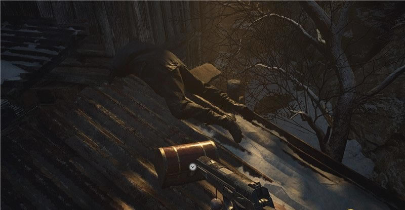 在尽头位置的一个房顶上,可以找到一个木盒(附近有一具尸体)。