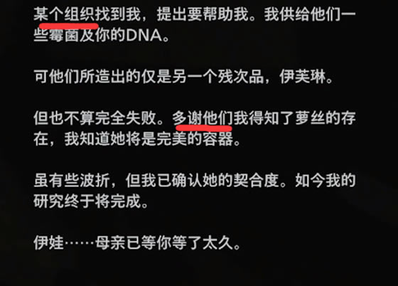 假设内容:米娅通过联盟内鬼知道了米兰达搞事情,悄咪咪告诉了克总,克总组织猎狼小队调查米兰达,BSAA内鬼察觉后痛击克总,BSAA内部知道Rose菌丝数据,没有告诉伊森,让伊森认为Rose是正常宝宝,米娅大概率知道会出事情,通过联盟内鬼写信给佐伊报个平安