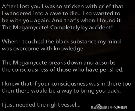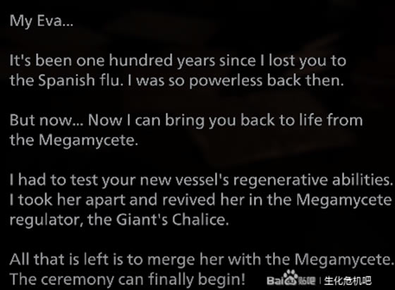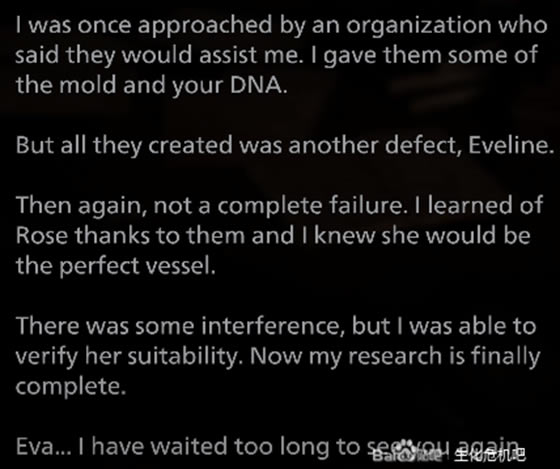 但他们创造出的不过只是另一个具有缺陷的失败品“伊芙琳”(详见生化7)老化速度过快 不受控性太强