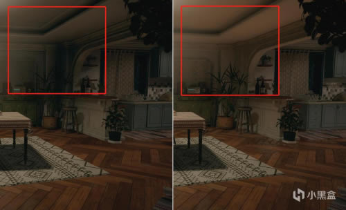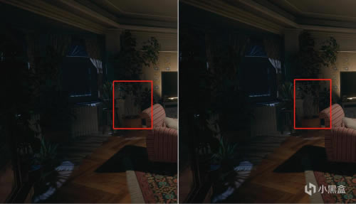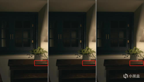 以上图场景为例,在隔行扫描下,盆栽反应在墙纸上的阴影相对于普通模式下没那么自然;其次在开启隔行扫描模式下可能会导致画面锯齿及抖动,这一现象在低分辨率下出现几率会增大。