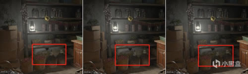 光线追踪选项的子项挡位一般在多数光追游戏中区别并不明显,《生化危机8》也不例外,唯一细微区别在于光线打到木桌上所呈现的细节,中等和高选项下拥有比低选项更多一些的细节。