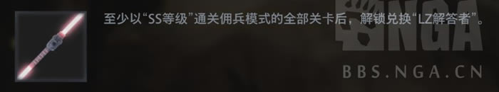 佣兵模式全SS后可在奖励商店兑换激光剑“LZ解答者”
