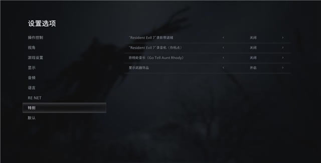 它包含了《生化危机7》录影带滤镜功能,《生化危机7》录音机(存档点)功能,存档处音乐《Go Tell Aunt Rhody》以及武器饰品是否显示功能。