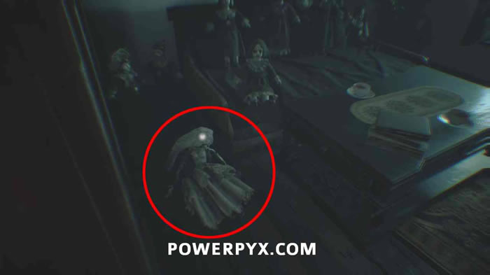 最后一步是与邪恶的娃娃战斗。这是一种独特的老板斗争。您必须找到玩偶3次,然后按叉/A与之互动。该地区还有许多其他玩偶可以分散您的注意力,但您需要的那个洋娃娃看起来却与白色婚纱很不一样。第一次出现总是在楼上的房间。上楼,穿过明亮窗户右边的门。然后,玩偶将改变位置。这是一张照片: