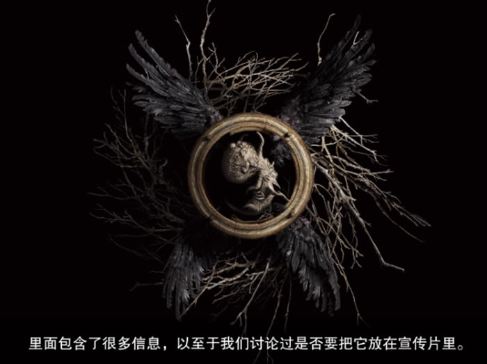 最后聊一聊母神米兰达及其手下们的目的,关于这点要从一段早期《生化8》宣传视频说起。官方特地强调了一张造型别致的概念图——由树枝、鸦羽以及光轮组成的鸟巢,中间还有一个怪异的胚胎。当时由于情报不足,即使官方放话也无法理解其含义,不过现在倒是能猜测个大概。很明显鸦羽光轮都是母神米兰达的元素,这个指代的应为米兰达之子。但中央胚胎的样貌相当扭曲,无法确认其是否存活,即使活下来也可能是怪物模样。