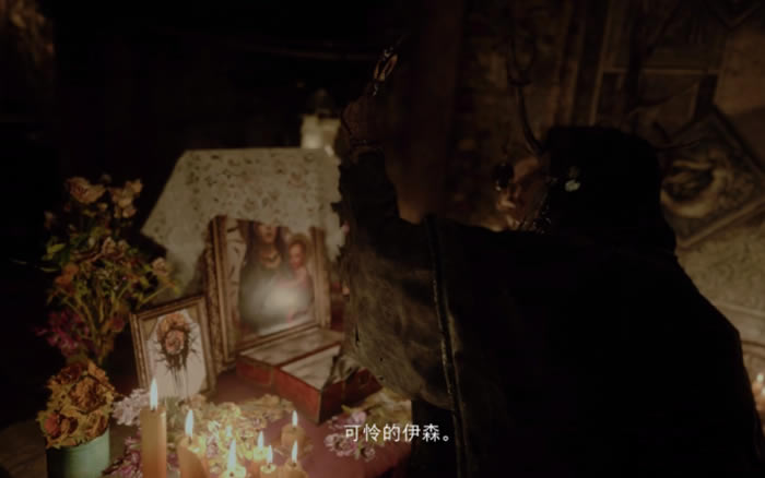 母神米兰达与其子也已经出现在了游戏预告片中,“村庄”Demo里村民口中那个对母神米兰达极其虔诚的老奶奶,在预告片里现身时,身前还有一张完全不同的米兰达画像。这张画像虽然过于“捏他”圣母玛利亚,不过也可以看出其子对于母神米兰达的重要性。现在母神米兰达性情大变,怪物横行于村庄,村民的祷告再也求不得庇护,极有可能是其子出了问题。那么这又和我们的主角伊森有什么关系?为什么所有人都把伊森看的那么重?