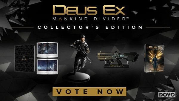 《杀出重围:人类分裂》自从在E3公布之后,玩家一直要求希望史威公布本作的收藏版本,或许这就是玩家对本作的热情过多,史威自然很乐意的公布了此次收藏版的内容,不过这些内容并不是集合在一起,而是通过玩家投票来决定:这些内容分别是:一个Adam Jensen手办,一把模型武器,一本迷你艺术画册,一套贴纸,午餐盒等等内容,如下图所示。投票时间将在7月3日结束。