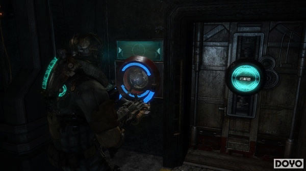 走出电梯到走廊,从地上拾取文本记录(音频日志4)。打开前方的栅门继续走,地上到处是被砍下的头颅,在墙角拾取文本记录(音频日志5)。