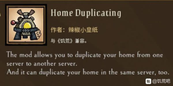 一个非常牛逼的mod,牛逼到什么程度呢,甚至可以把图A中建立好的基地搬迁到另一张图中!注意使用的时候详细阅读mod简介,包裹和眼球塔一定要带在身上;同样这个mod可以把基地整体搬迁到另外一个地方,这个比搬家方便多了