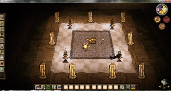下面的区域就是宝藏区 这块地皮很长一段时间里是空的,想不出来可以放啥,忽然有一天,打完龙蝇以后去做了个龙鳞箱,这下就有灵感了