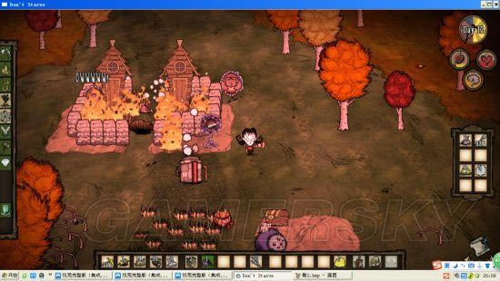 猪人房旁边围4X4的草墙,中间用一个做导火索,一定要做,否则灭火强过燃料,容易灭。