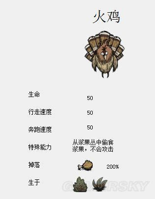 白天时,每采集一株浆果,便有10%的几率出一只火鸡,火鸡会以极快的速度吃掉未采摘的浆果。