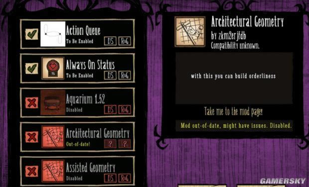 进入mod界面之后,在左侧是已经安装的mod列表,前面有对勾的是已经激活的mod,有个叉叉并且红色边框的是已经安装但是没有激活的mod