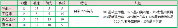 1、各职业初始人物属性数值: